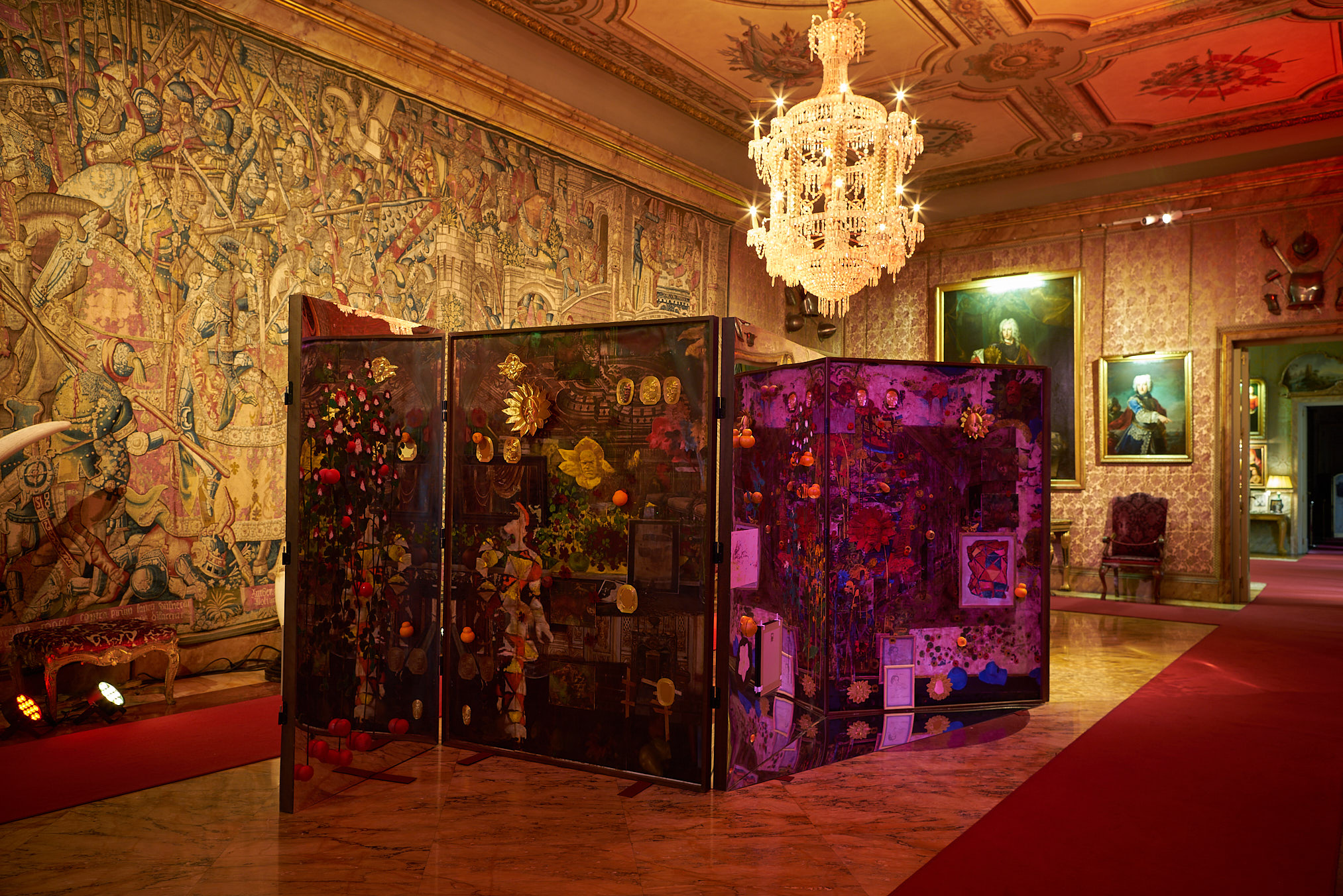 Con una trayectoria de más de cuatro décadas, José María Sicilia (Madrid, 1954), una de las figuras más relevantes del arte contemporáneo español, ha intervenido las estancias más emblemáticas del Palacio de Liria como la biblioteca, el Salón de baile, el Salón Amores de los dioses, el Salón Estuardo o el Salón Gran Duque, entre otros espacios, reuniendo obras recientes creadas ex profeso, así como una instalación site-specific. Todas ellas, concebidas desde la escucha atenta a las historias latentes que el lugar conserva, estas piezas se entrelazan con la arquitectura y la memoria del edificio y fomentan el diálogo entre la colección de la Casa de Alba y el presente.